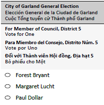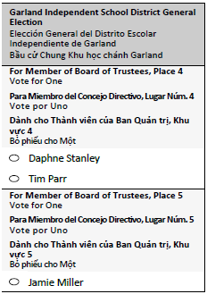 Next Election: May 2, 2026Joint & Special Elections Voter Resources Dallas County Election Site (Link) Important Dates - 2026 May Election Last Day to Register to VoteThursdayApril 2, 2026First Day of Early VotingMondayApril 20, 2026Last Day of Early VotingTuesdayApril 28, 2026Last Day to Receive Ballot by MailMondayMay 4, 2026Election DaySaturdayMay 2, 2026